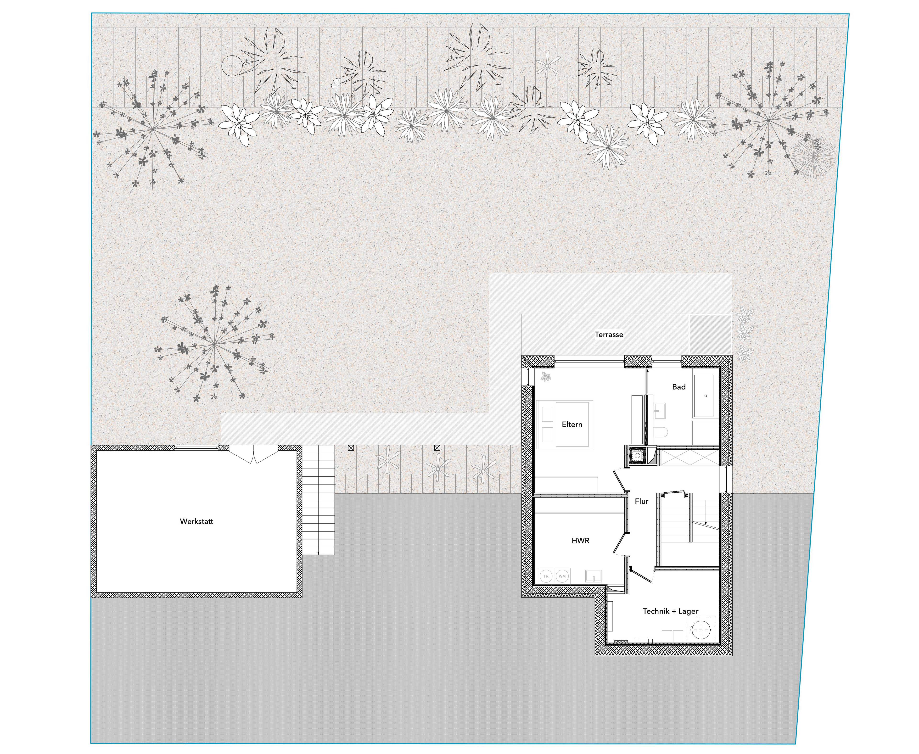 Auf einem unbebauten Hanggrundstück außerhalb eines Bebauungsplans in Dischingen entsteht ein individuell geplantes Einfamilienhaus mit Doppelgarage und integrierter Werkstatt. Die Planung reagiert sensibel auf die topografische Lage und die Belichtungssituation des Grundstücks und nutzt deren Potenzial für eine klare, funktional durchdachte Architektur.