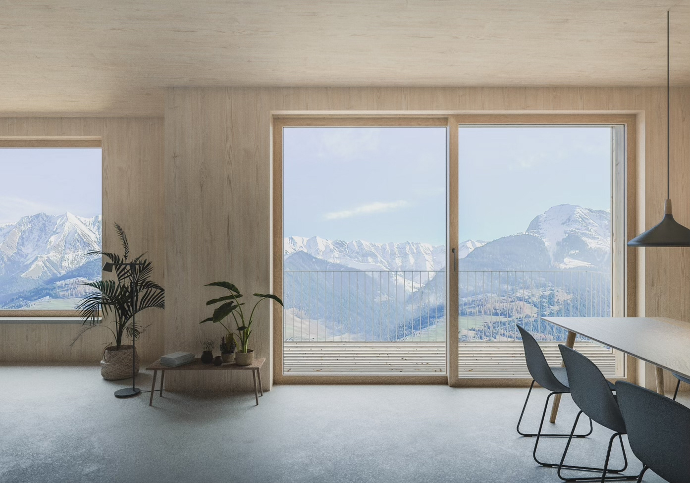 Vom Bauplatz auf 1350m im "Tal des Lichts" erstreckt sich der Blick in Richtung Vals.